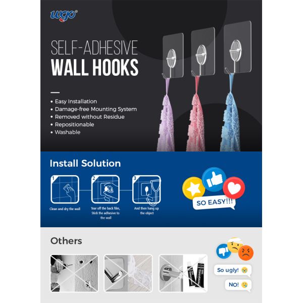 | Material | 304 stainless steel hanger + PC + Resin(WGO® adhesive tape) |